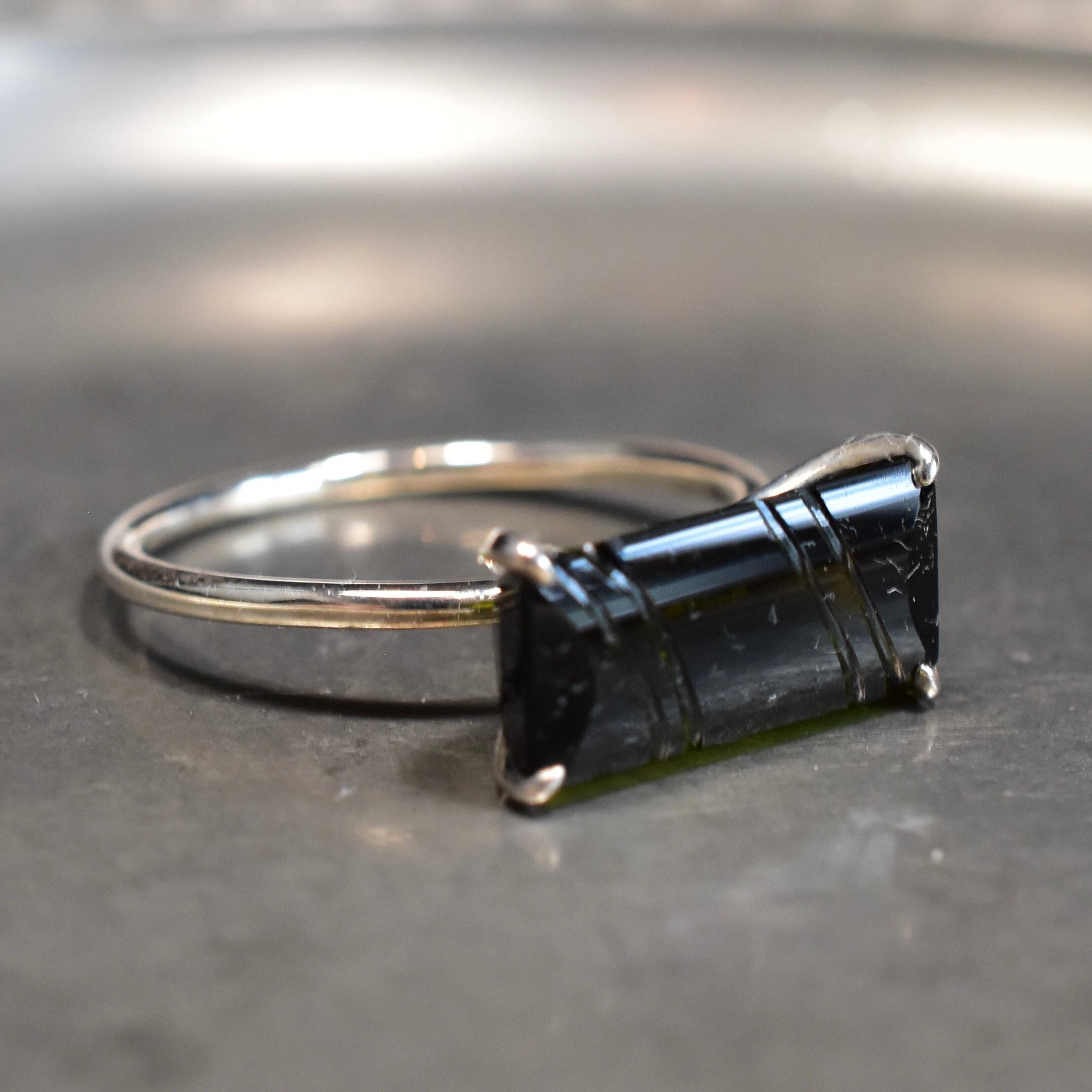 石の四隅を爪で留めたデザイン。サイドからも石を見る事が可能で、石のカットやインクルージョンを見て楽しむことが出来ます。