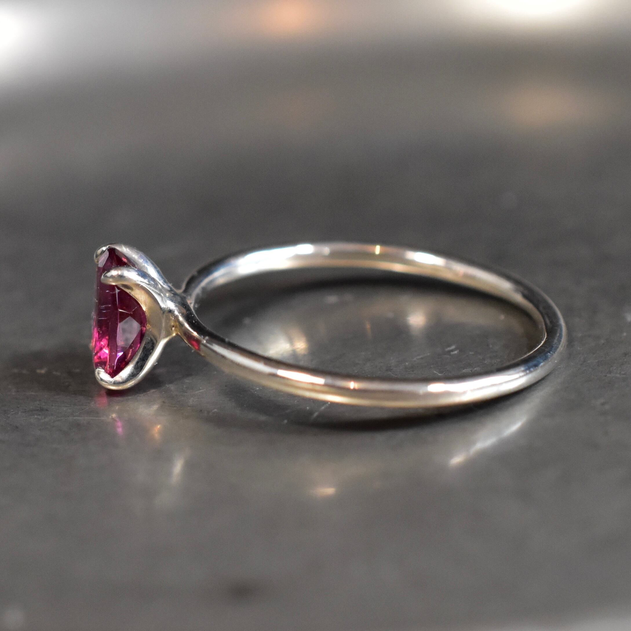 石の四隅を爪で留めたデザイン。サイドからも石を見る事が可能で、石のカットやインクルージョンを見て楽しむことが出来ます。