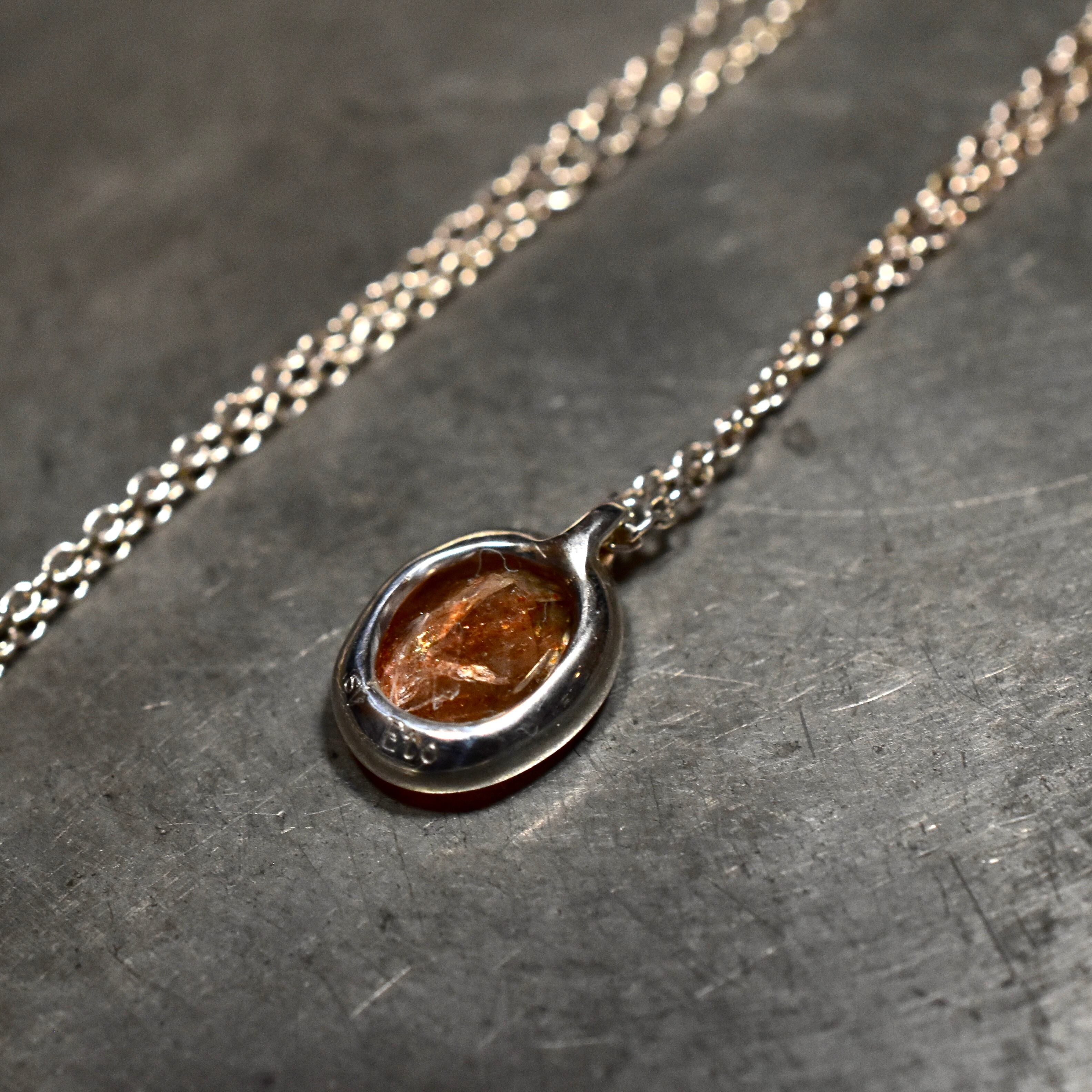 サンストーンは、石の中にラメが入ったような、独特のキラキラした輝きが特徴の石です。赤色やオレンジ色のほか、黄色や褐色などをしています。長石グループの中で、アベンチュレッセンス(キラキラと輝く光学効果)が見られる天然石です。