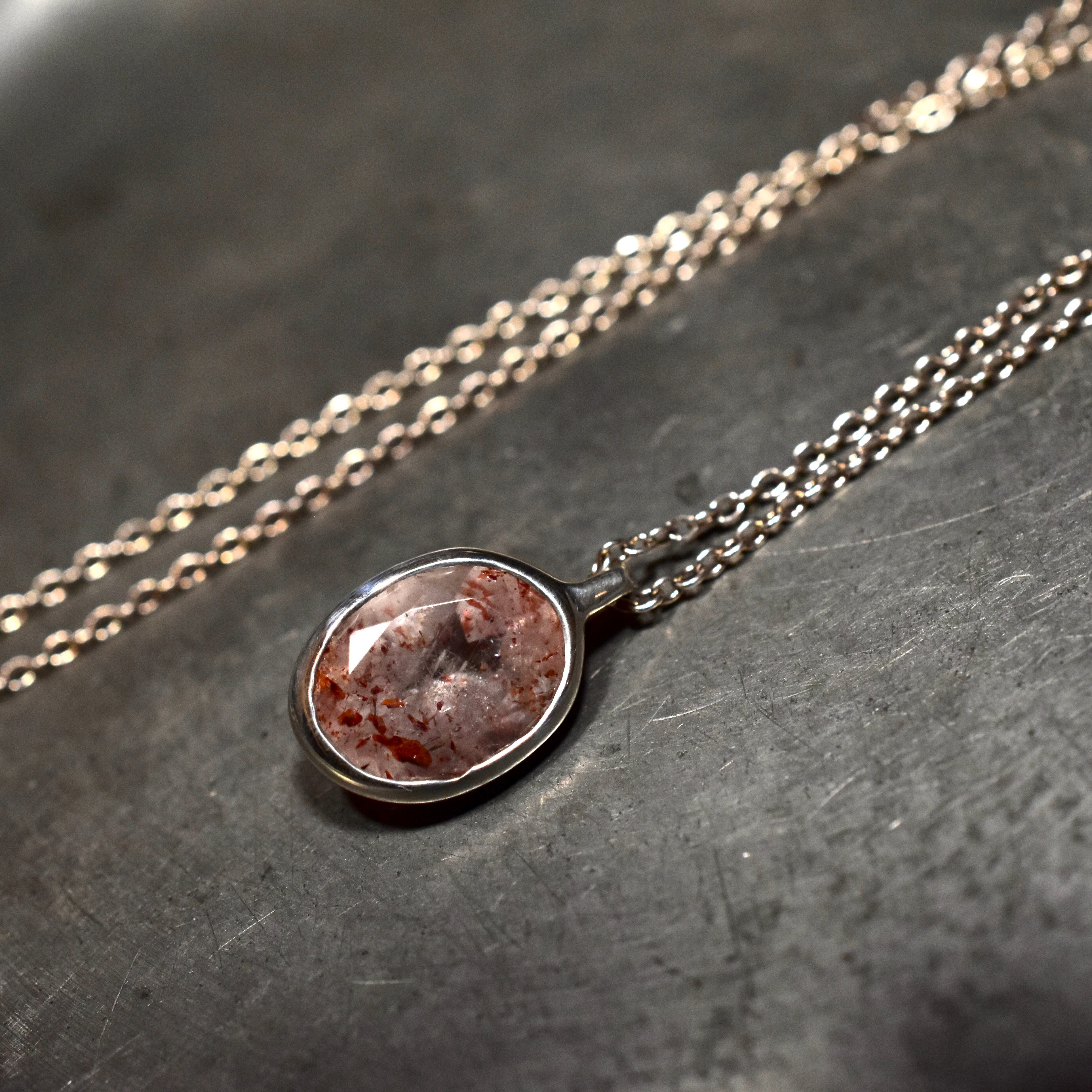 透明度の高いクリスタルの中にレッドの内包物が浮かんでいるように見られ、 天然ならではの不思議な魅力を感じさせます。