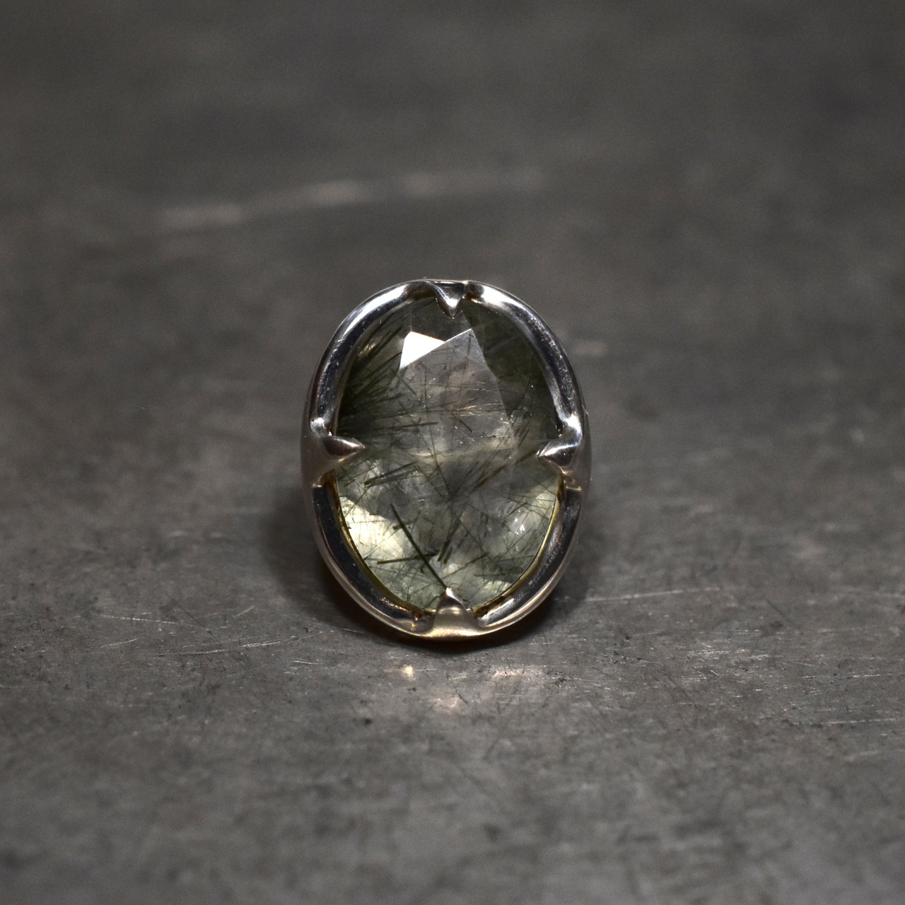 アクチノライト(緑閃石)を含む水晶は、アクチノライト・イン・クォーツと呼ばれ、アクチノライト自体はトレモライト(透閃石)の一種で2%以上の鉄分を含むものをそう呼びます。