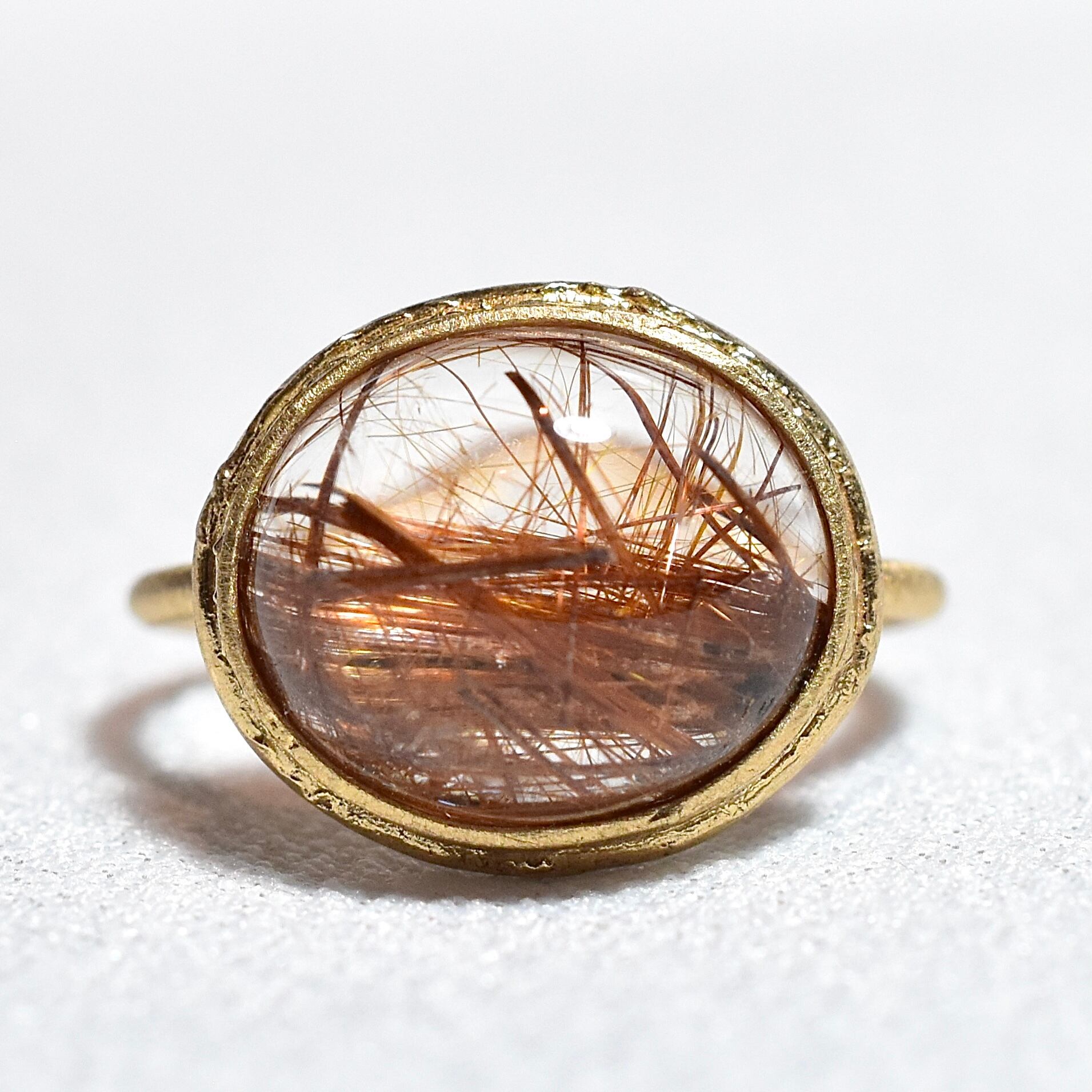 細かな凸凹が複雑に重なり合い光の角度によって煌めき方が変わるリングです。